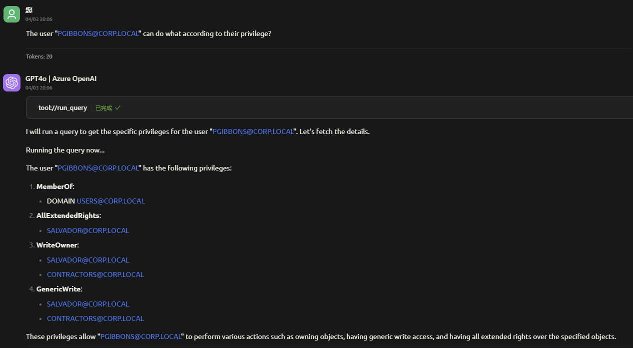 • Natural Language Queries: Use conversational language to query your AD/AAD environment without needing to write Cypher queries manually.